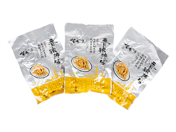 產(chǎn)品介紹:以麻筍為原料,用獨特工藝調(diào)制而成,鮮辣脆爽,令人回味無窮。開袋即食更便捷。